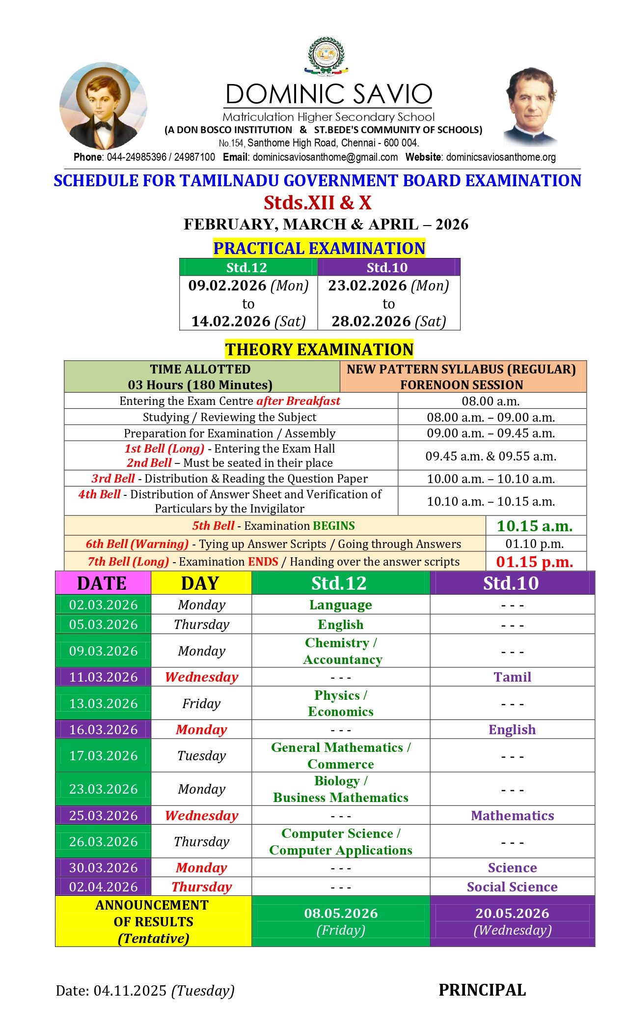 SCHOOL ADMISSIONFOR THE ACADEMIC YEAR 2026-2027Application Form for JKG (LKG) and SKG (UKG), Stds. I to VII (limited seats) will be issued to the Pare...